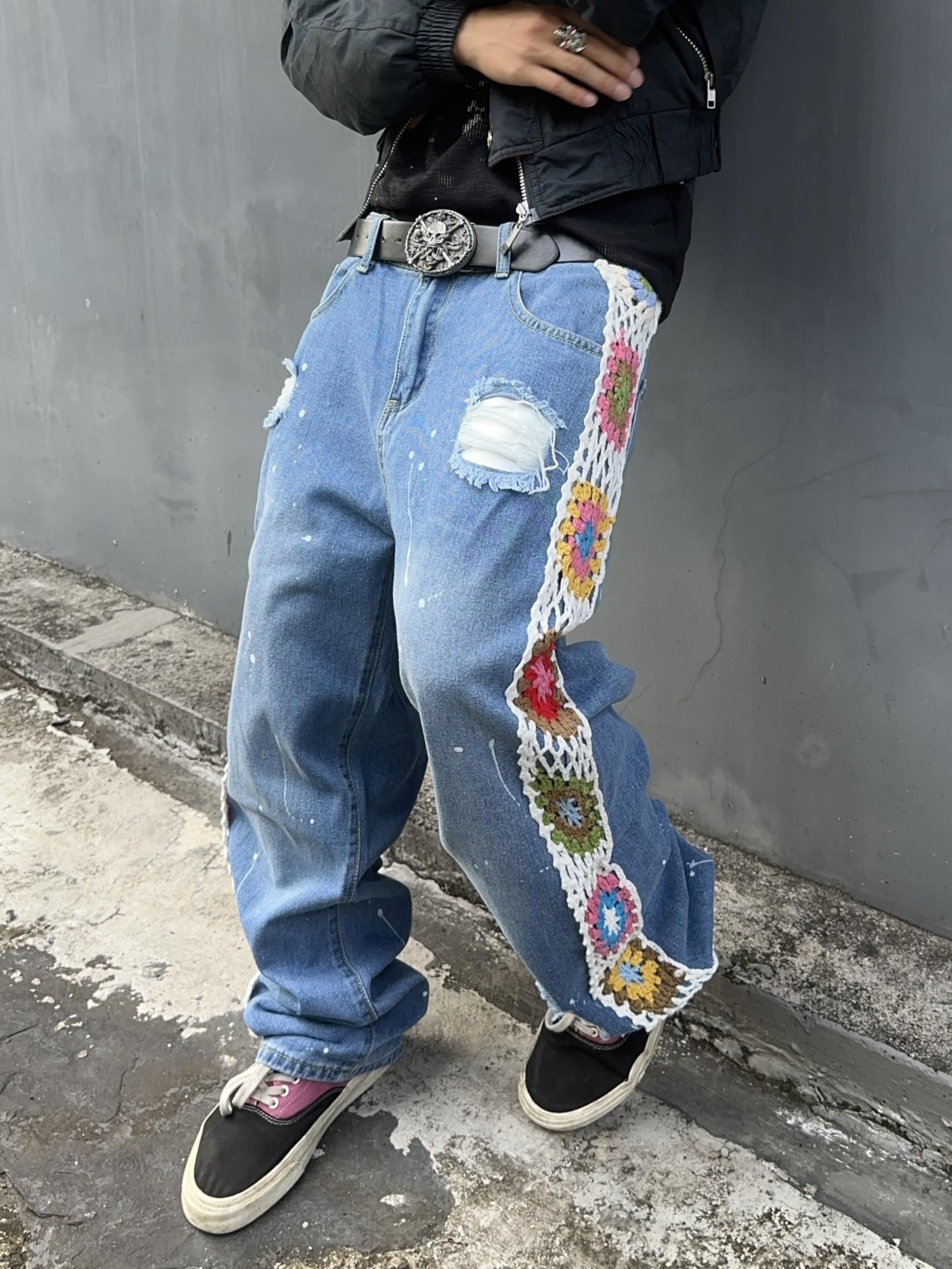 Meeste rebitud hip-hop teksapüksid, lillelise mustriga, sinised (XXL)