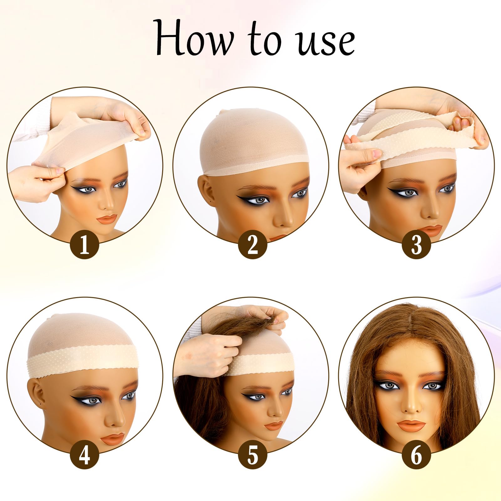 Parukavõrgud ja veniv silikoonist parukahoidja (6tk)