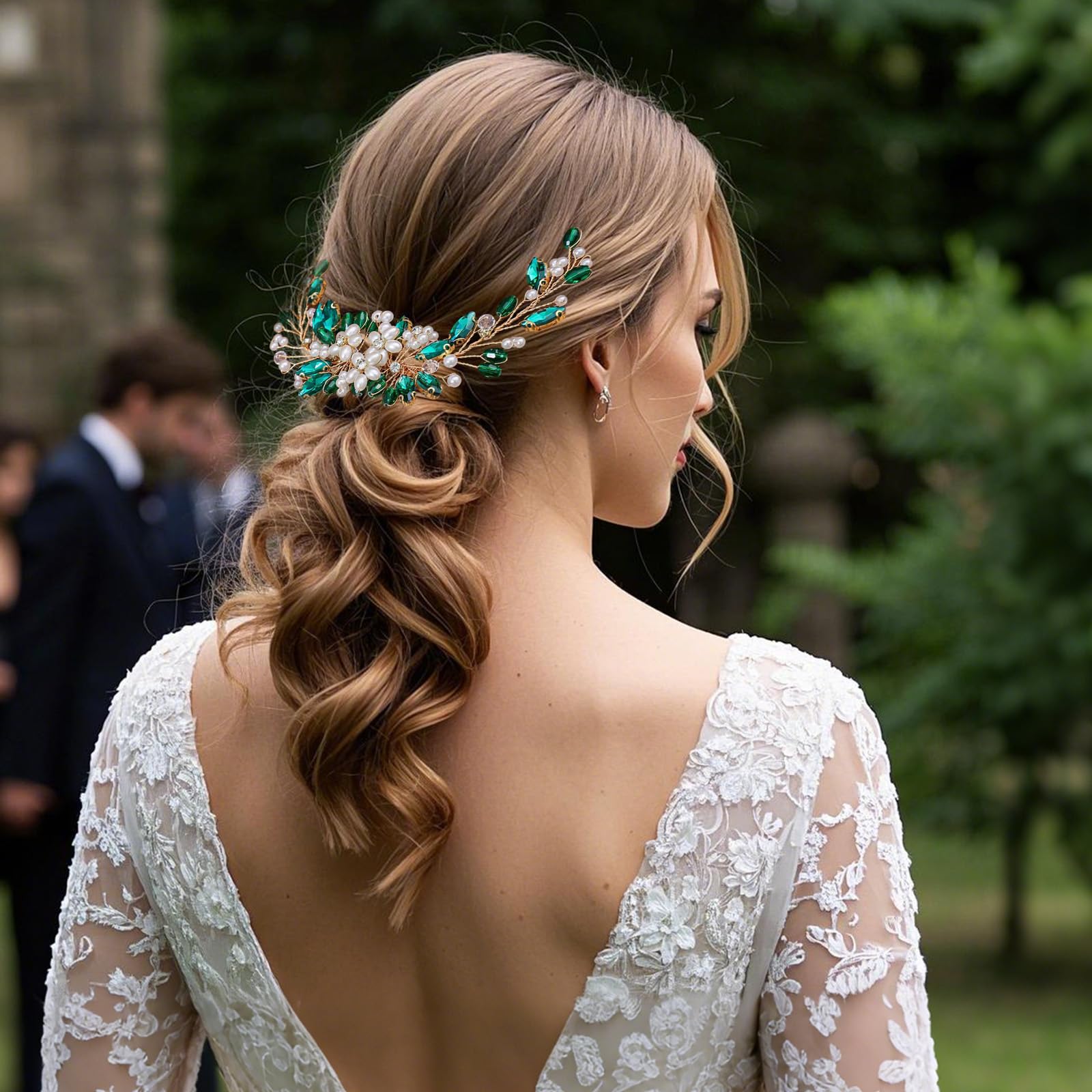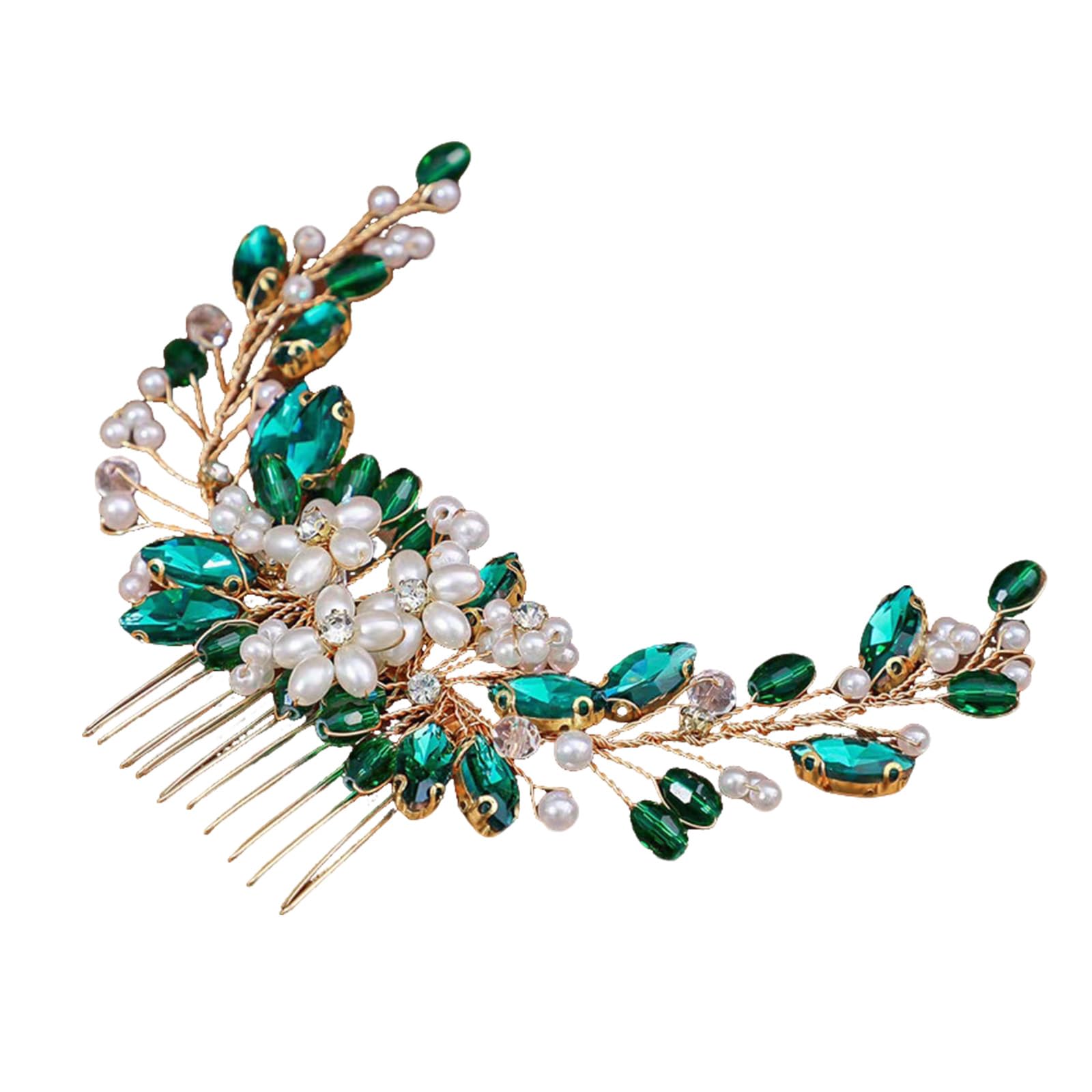 Soengukamm, kristallide ja pärlitega, lilleline, kuldne