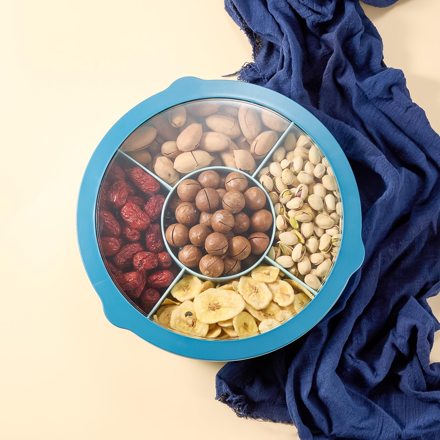 Suur lekkekindla kaanega snäkikauss, juhuslik värv, läbimõõt 29 cm kõrgus 8 cm