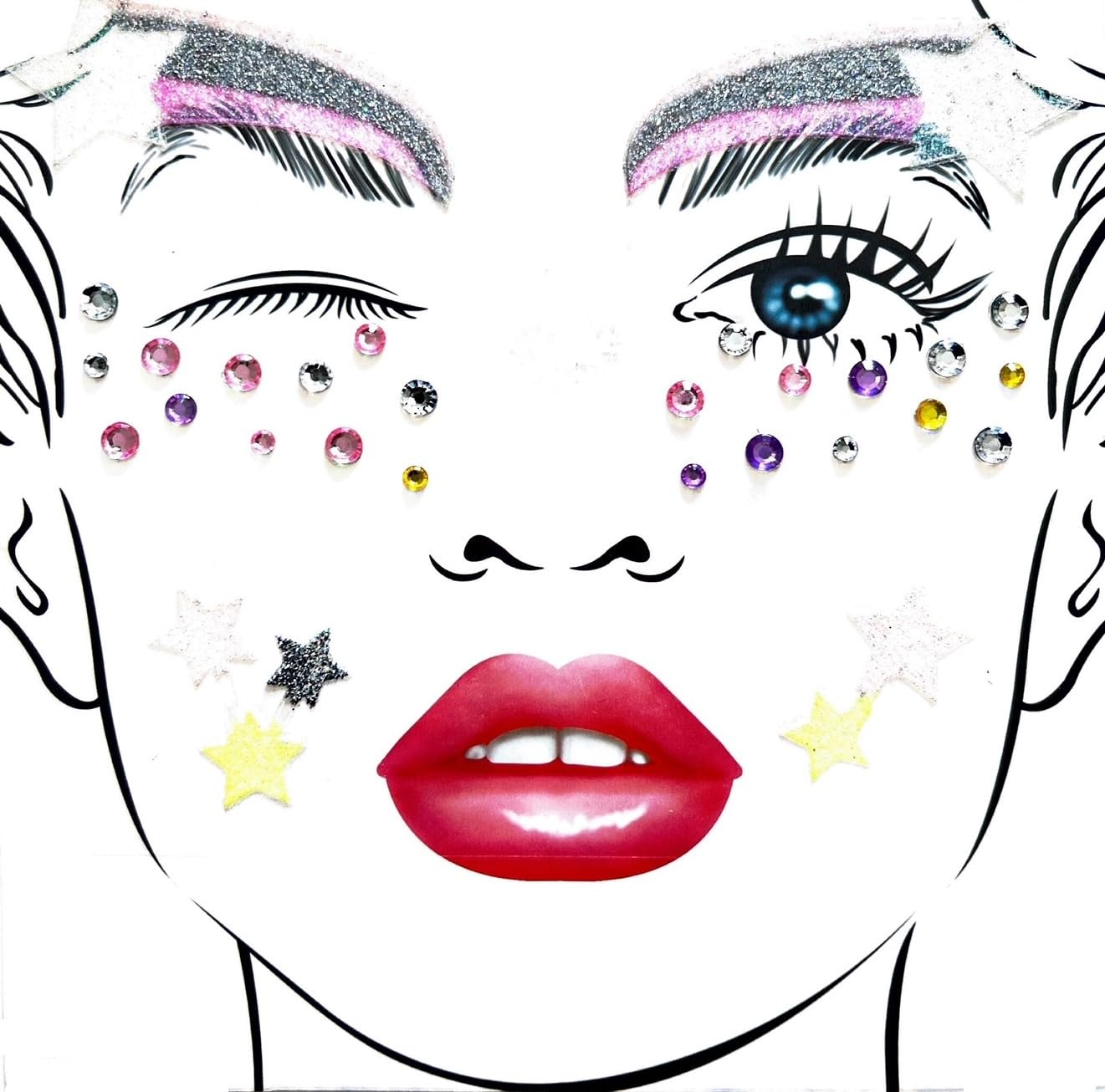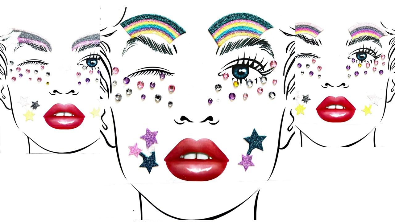 Värvilised näokleebised ja kristallid, kolm lehte